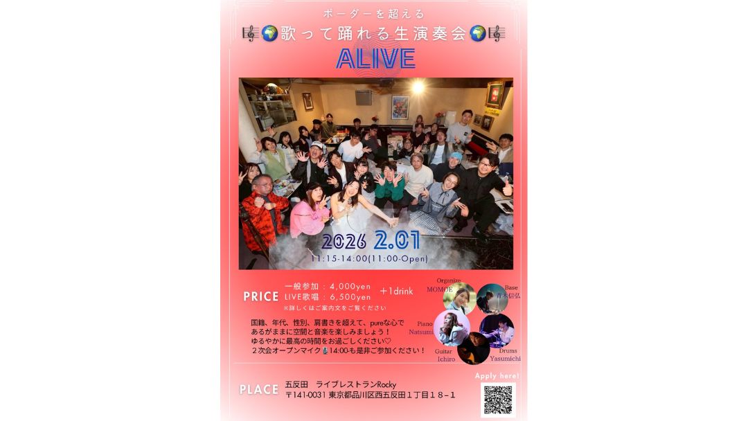N. Heart(花本直樹)さんが『ボーダーを超える歌って踊れる生演奏会 ALIVE』を開催